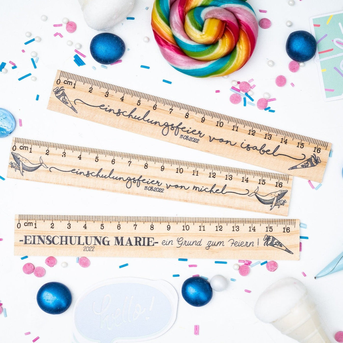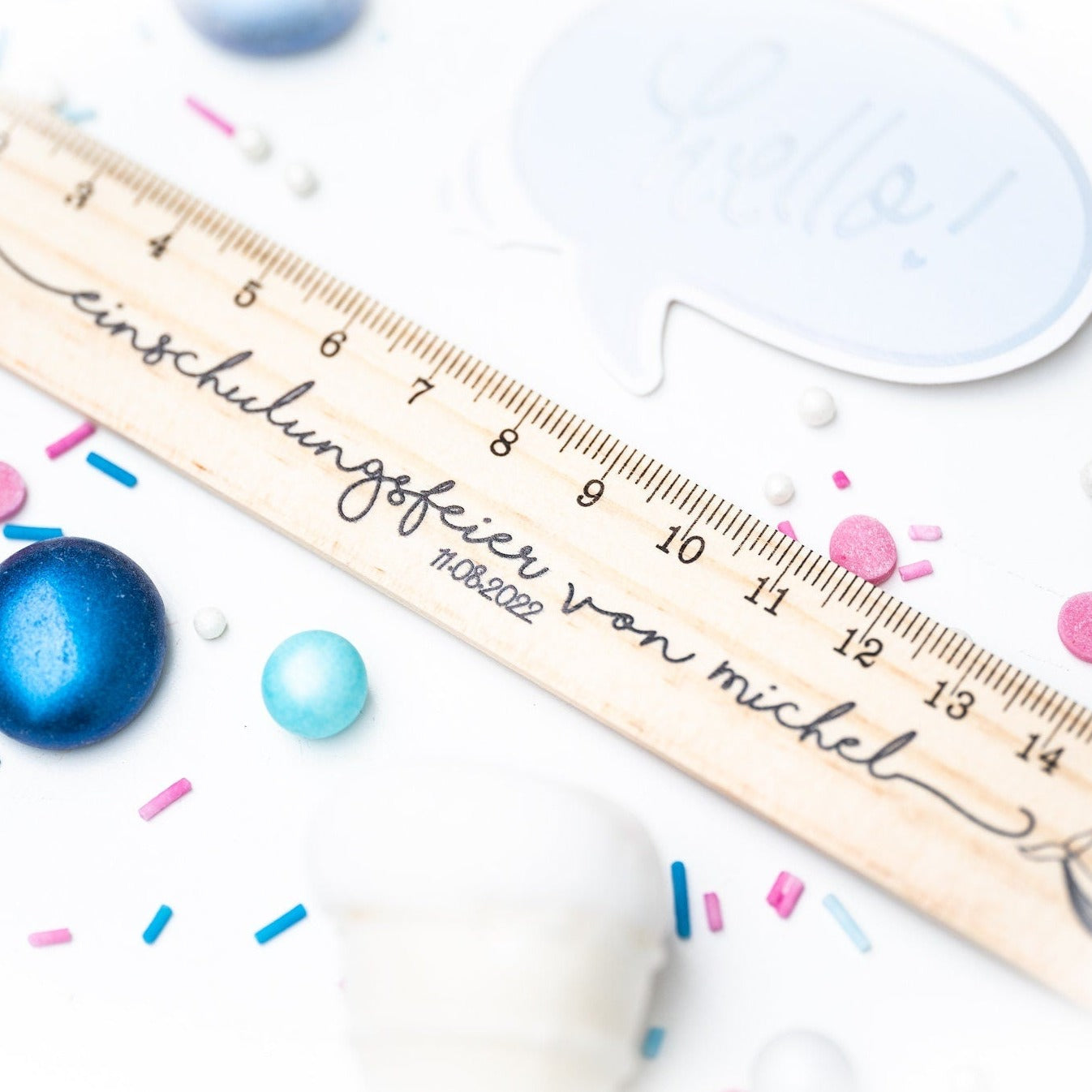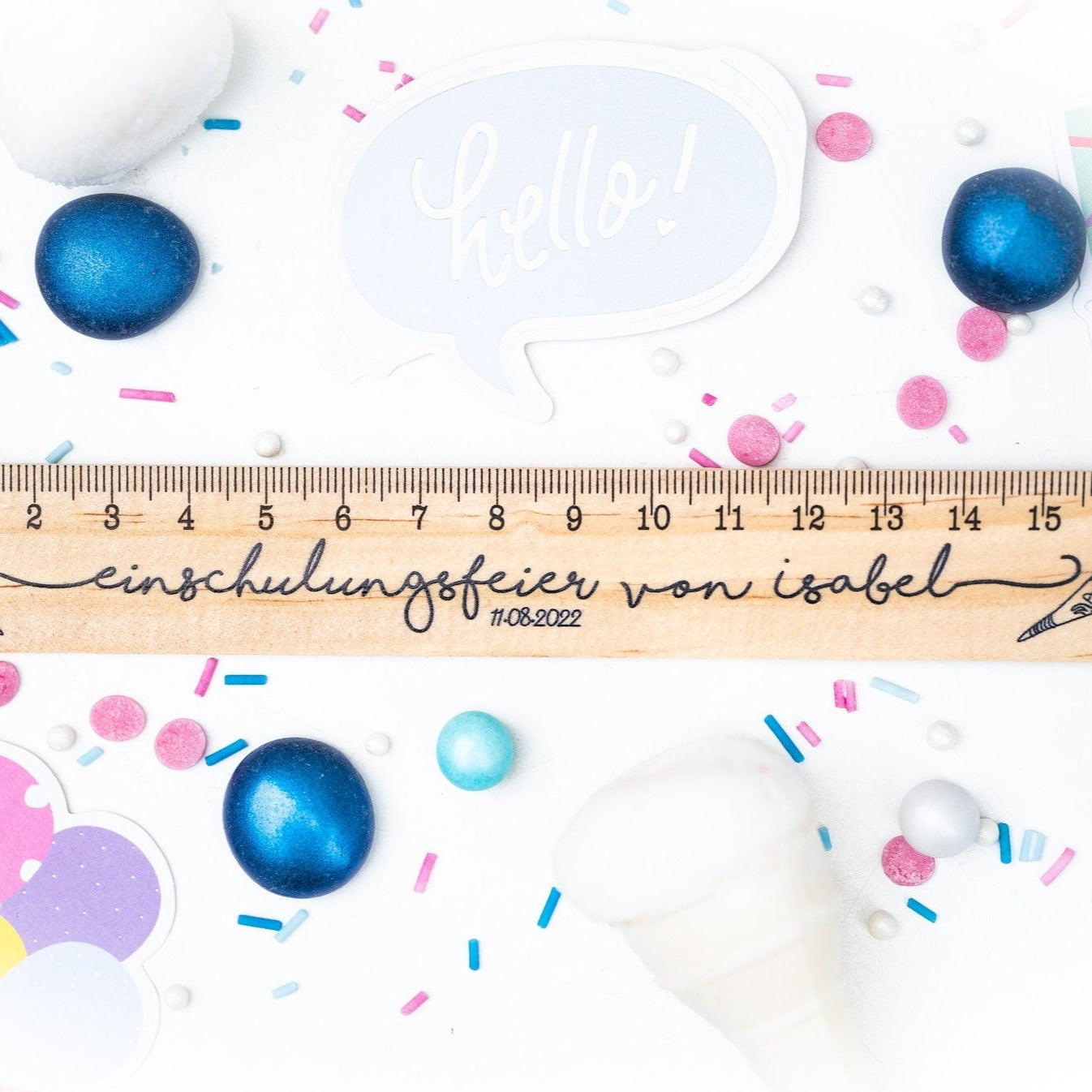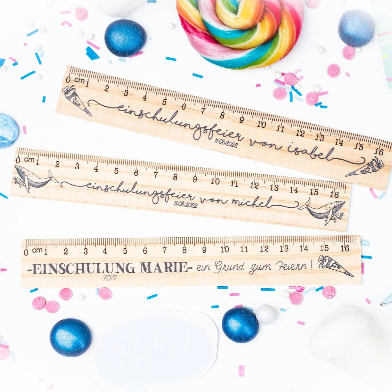 Ein Lineal zur Einschulung mit deinem Wunschdruck. Perfekt als Erinnerung und Dekoration für den Einschulungstisch.