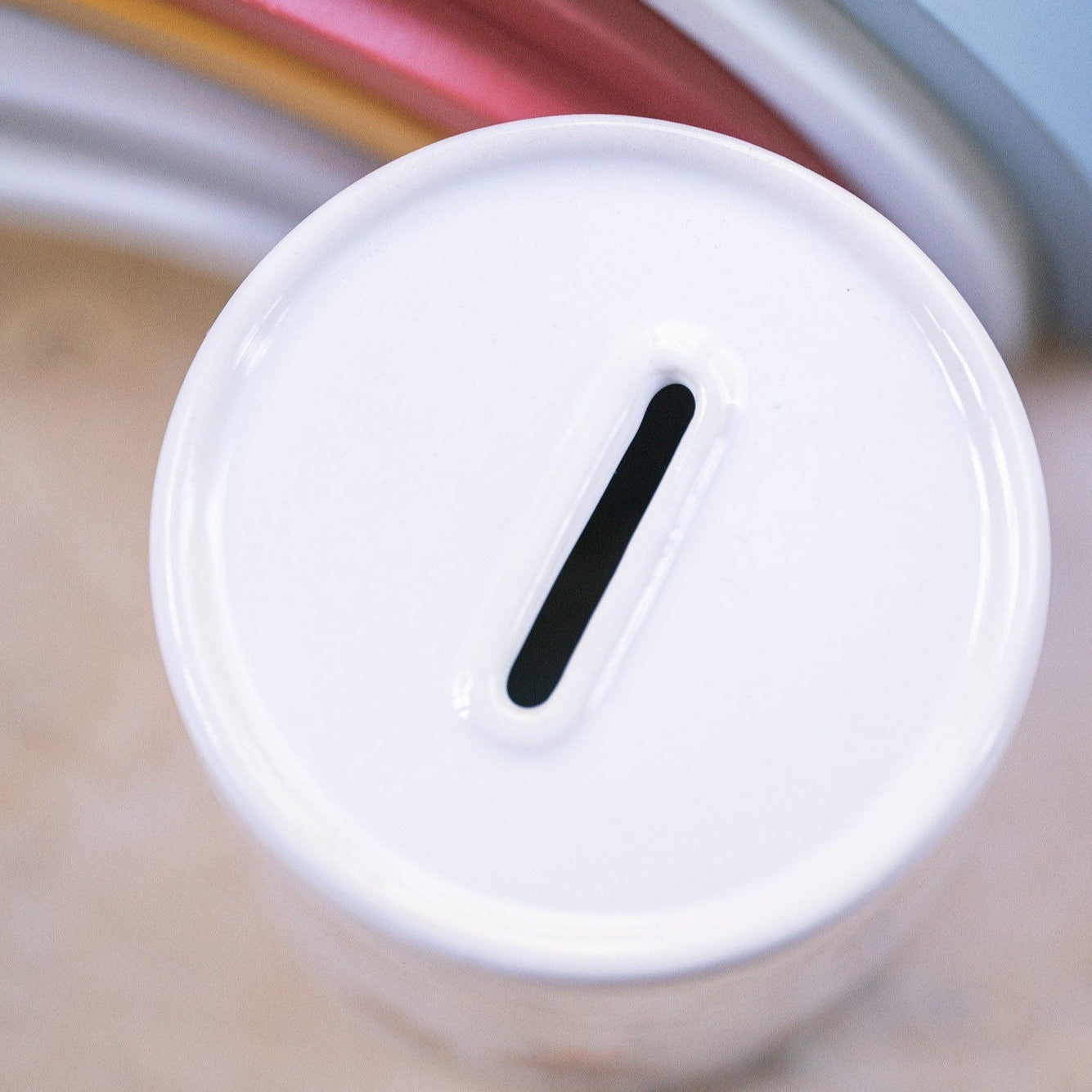Spardose aus Keramik mit "Boho Regenbogen"- Motiv und deinem Wunschnamen