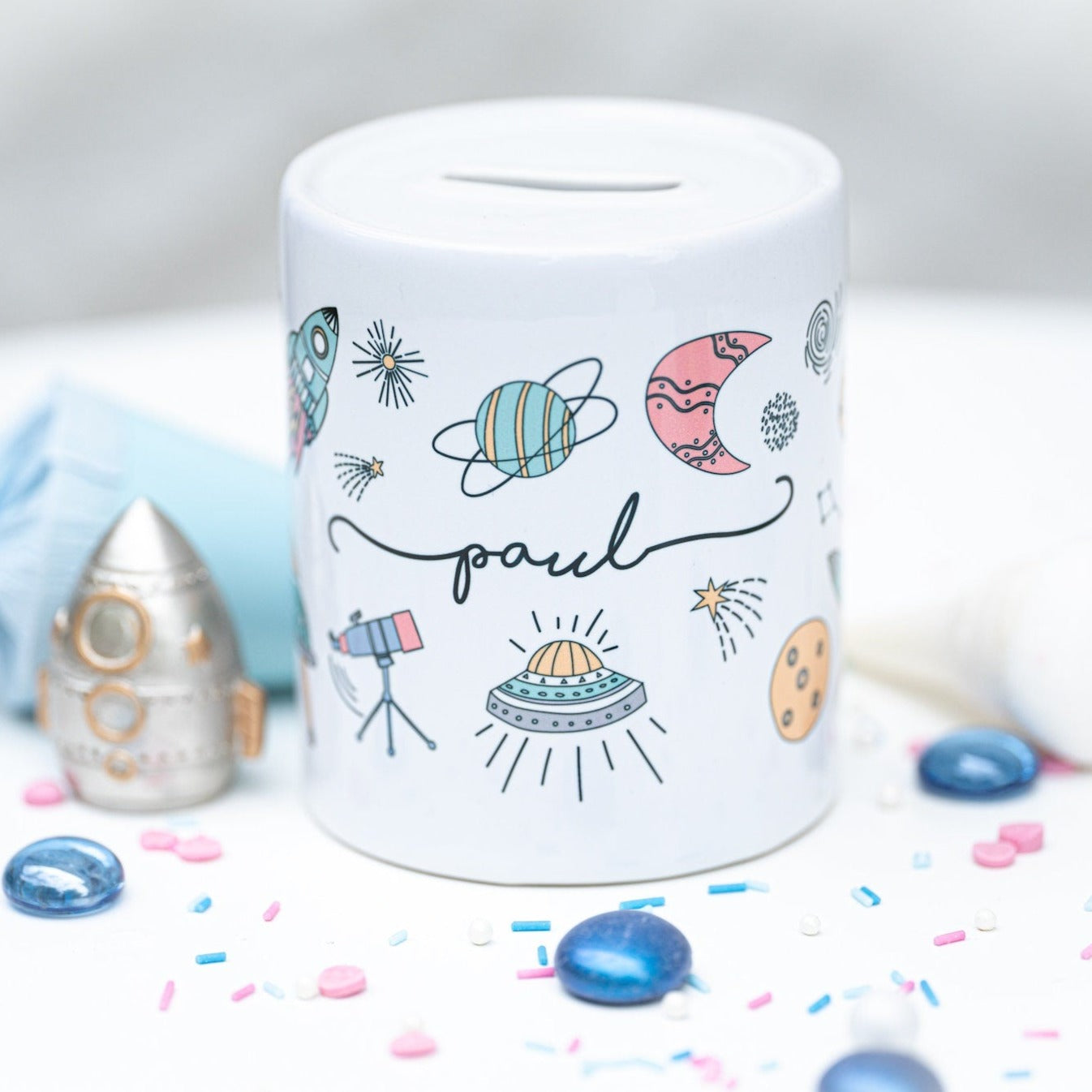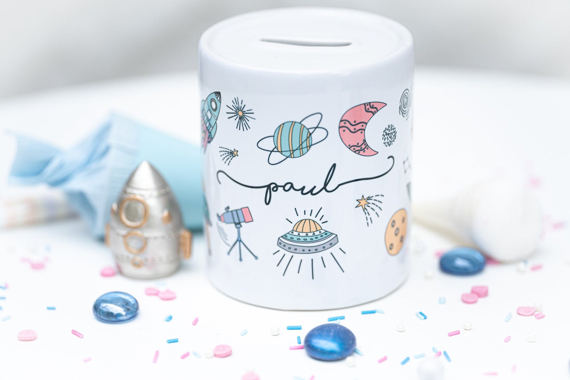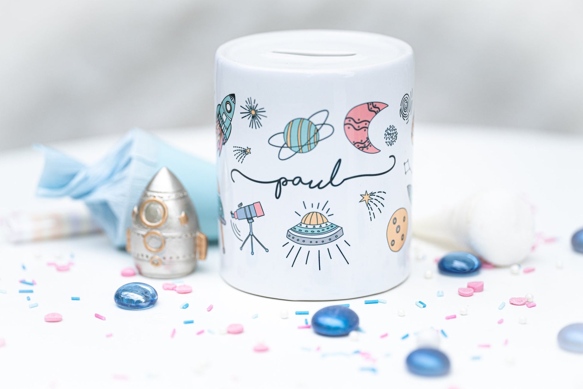 🚀 👨🚀 Spardose aus Keramik Weltraum mit Wunschname 🧑🚀 🚀
