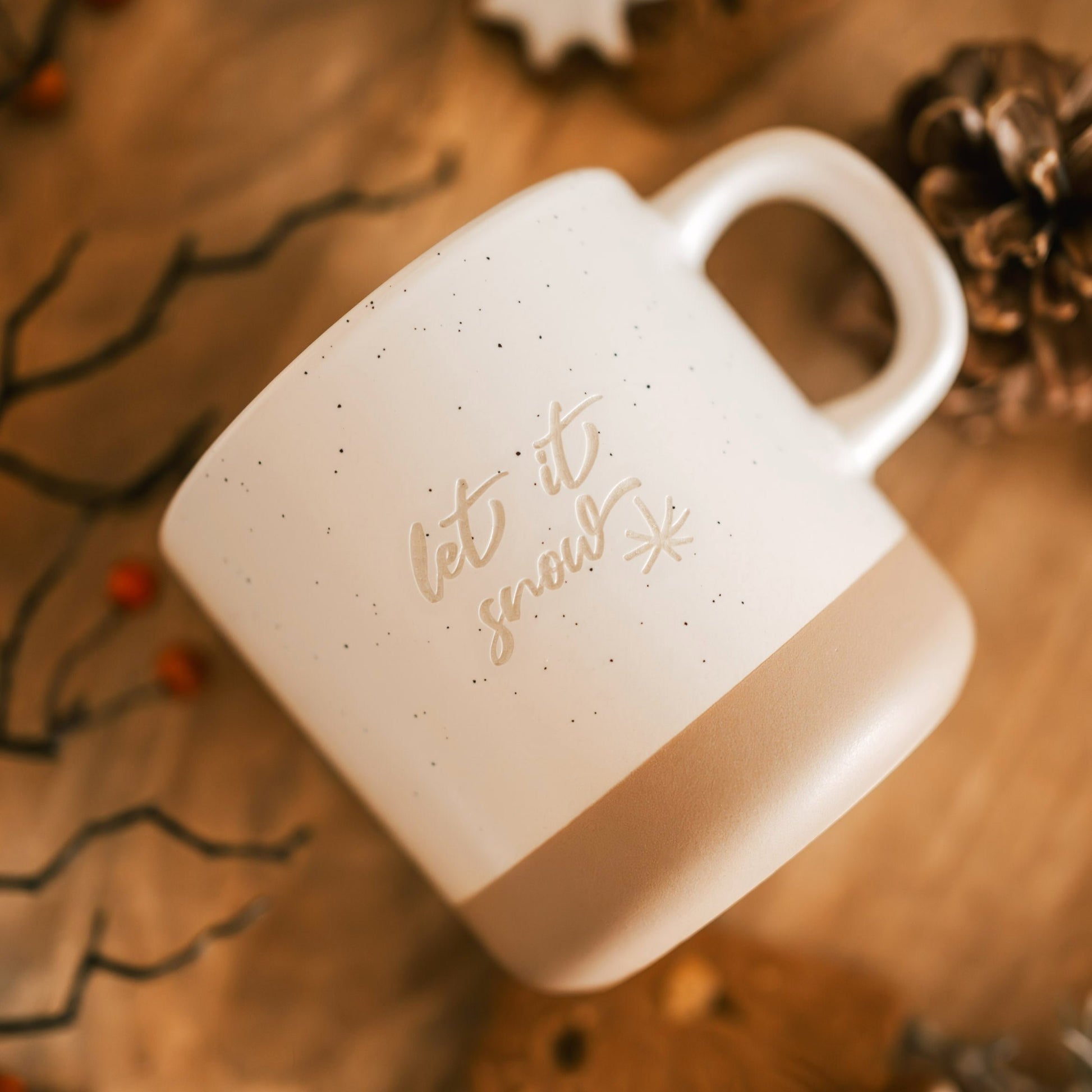 Das Motiv wird in die Beschichtung der Tasse gelasert.